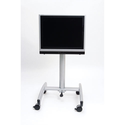 This Flat Panel TV Stand provides a convenient, way to display your flat screen. The sturdy metal stand features a pneumatic foot lever for easy height adjustment. The stand adjusts from 30" to 45" high from the floor to the center of the universal mount. An integrated wire management system keeps cords organized and out of the way, thanks to cable rings and a channel the length of the stand. When it's time to move the TV, use the easy-rolling casters to maneuver the stand over any surface. All casters brake for secure resting. This stand holds up to a 26" flat panel TV.